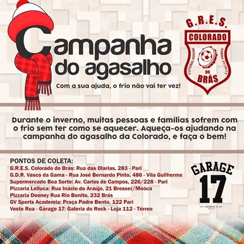 O Deptartamento Social da Colorado do Brás dá o ponta pé inicial em seus projetos a partir da Campanha do Agasalho 2016.