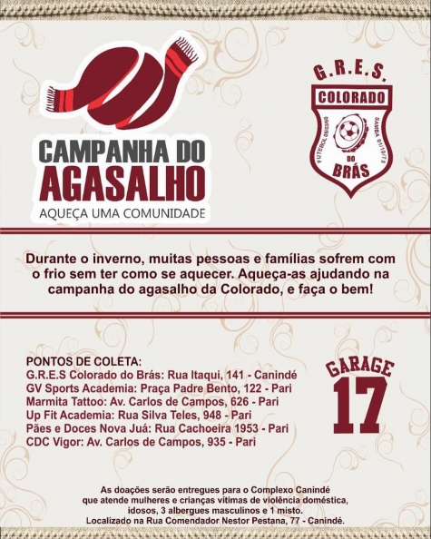 Durante o inverno, muitas pessoas e famílias sofrem com o frio sem ter como se aquecer, por isso a Colorado do Brás, mais um vez, lança sua campanha do agasalho!