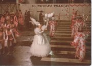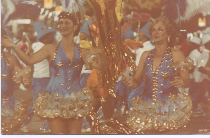 Em 1975, oriundos do futebol do domingo pela manh, amigos tiveram a ideia de fundarem uma escola de samba, poucos recursos, nenhuma tecnologia, nada de criatividade, mas o corao vermelho e branco rasgado de tanta alegria. Primeiro ano, o enredo Canudos, Seu Povo, Sua Histria, minha fantasia era de Chica da Silva, a roda de veludo vermelho que compunha a saia extremamente rodada passava as noites tomando toda a sala da minha casa, com vrias pessoas em volta dedicadas ao bordado. Os desfiles eram na Av. So Joo, lembro-me como se estivesse acontecendo, o corao na boca, os olhos brilhando, a emoo entorpecendo todos os sentidos. Minha me D. Lola comandava a ala das crianas, onde meus irmos tambm desfilavam suas fantasias de cetim estampado de losangos e as alegorias cheias de espelhos colados, em fila indiana tentando fazer bonito. Meu pai - Roberto ajudava a colocar escola na Avenida.